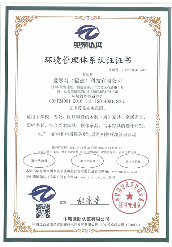 2023年愛學(xué)習(xí)(福建)科技有限公司獲得中贛認(rèn)證環(huán)境管理體系認(rèn)證證書